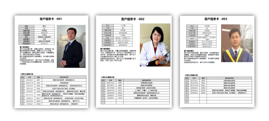供学员分析的客户信息卡