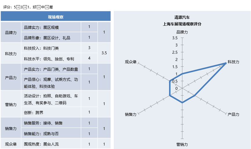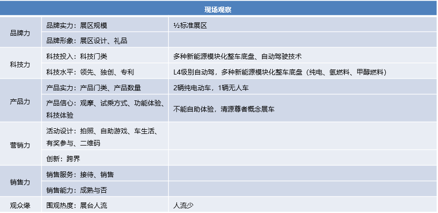点评:清源汽车仅展示出概念样车,样车无法自助体验。