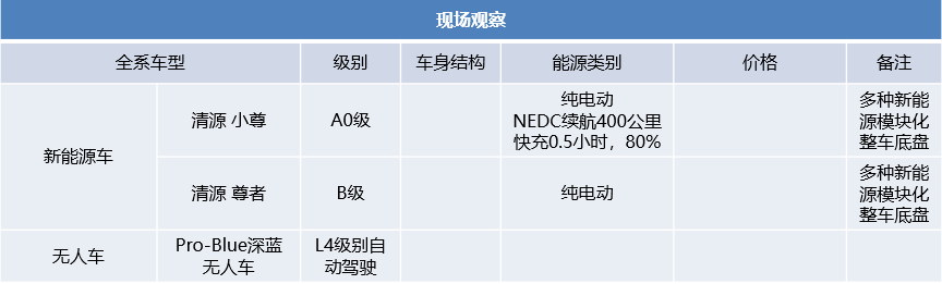 点评:清源汽车仅展示出概念样车,样车无法自助体验。